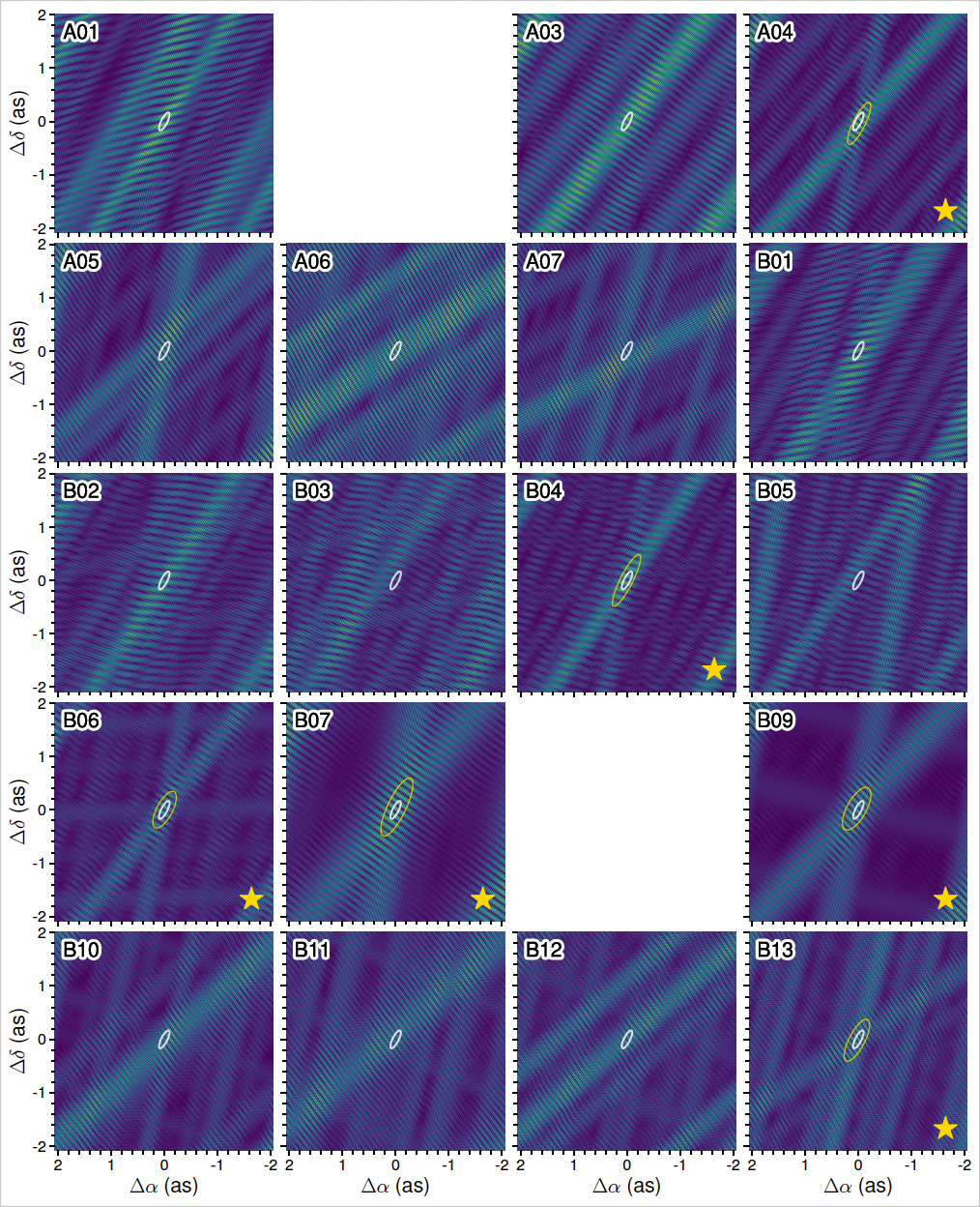 Here, Célestin Herbé-George and collaborators demonstrator a proof-of-concept of this methodology by detecting a 5.6 mJy core-jet object at 1.7 GHz shown in Figure 1. This object, which was present in the raw visibilities of the observation, would have otherwise been lost from the parent data set and is the first object to be recovered as part of the SWEEPS pilot programme. The other objects present within the primary beams of the EVN+e-MERLIN telescopes are shown in figure 2, and illustrate the potential for increasing sample sizes of VLBI-detected radio sources with commensal observing modes in the near future.